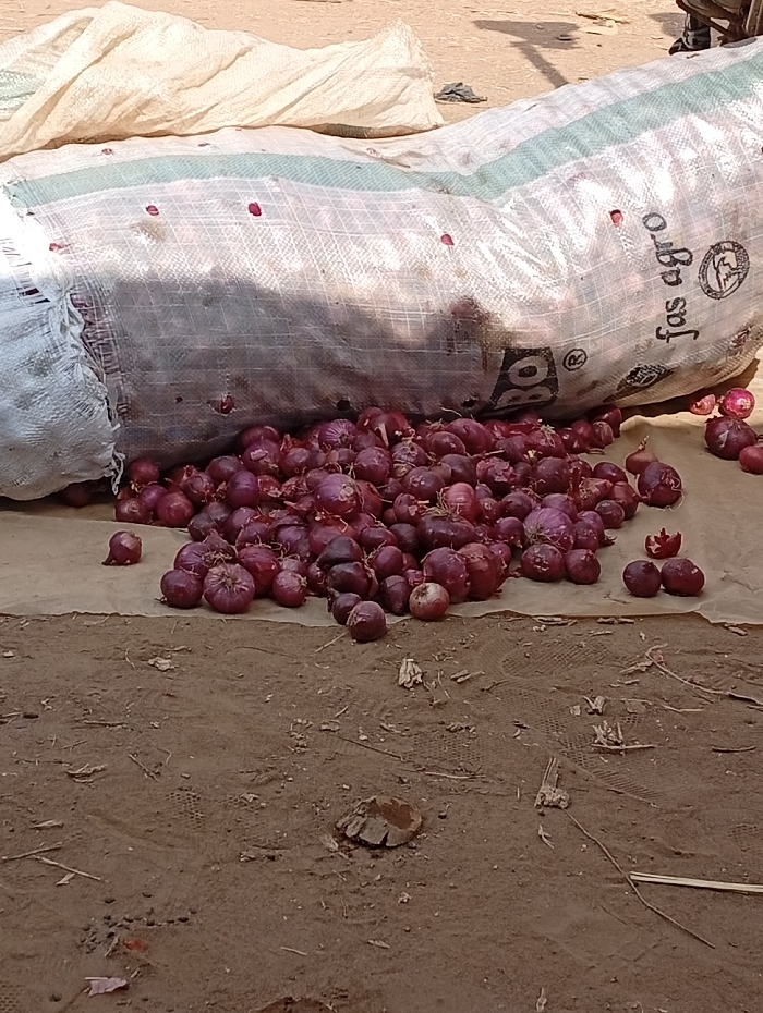 In the city of Unknown, Unknown, an outdoor scene displays a substantial quantity of red onions