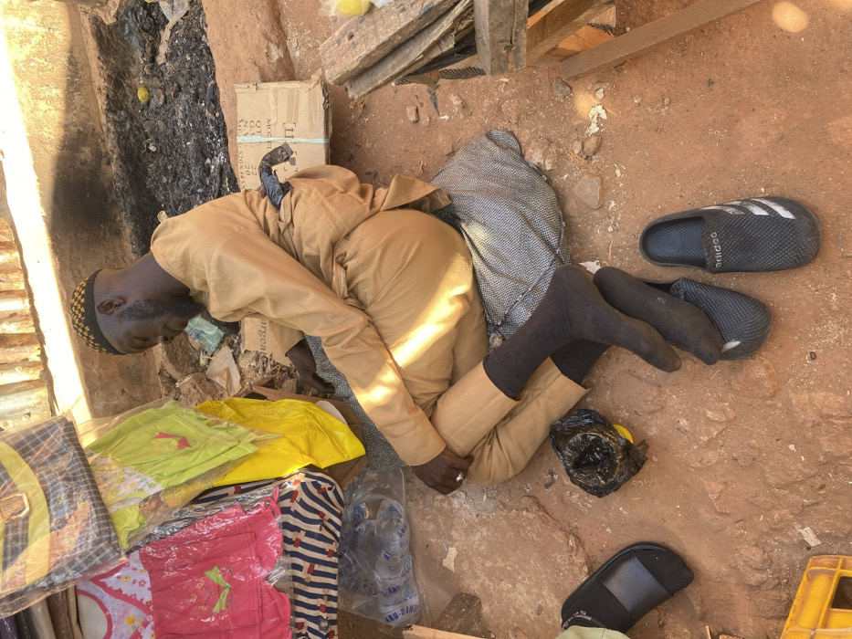 An adult male is observed sleeping outdoors in Sabon Gari South, Nigeria