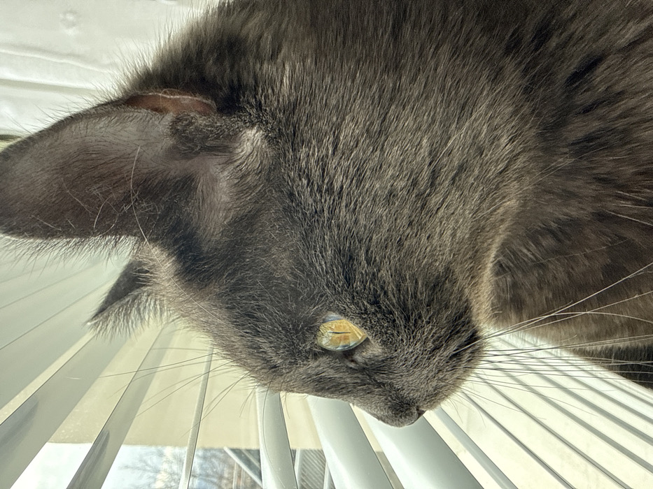- "A grey-furred cat is captured in a close-up, profile view, facing left towards a window in Marchaevo, Bulgaria" by FM-zk5wI2, licensed under CC BY 4.0