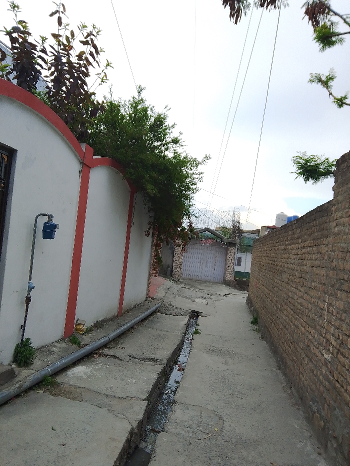This image depicts a narrow concrete alleyway or street in Mansehra, Pakistan