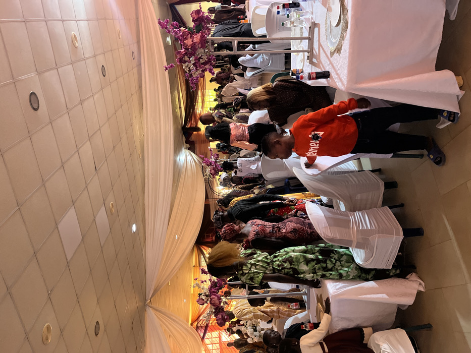 This image depicts a crowded interior event hall located in Jos, Nigeria, during a social gathering
