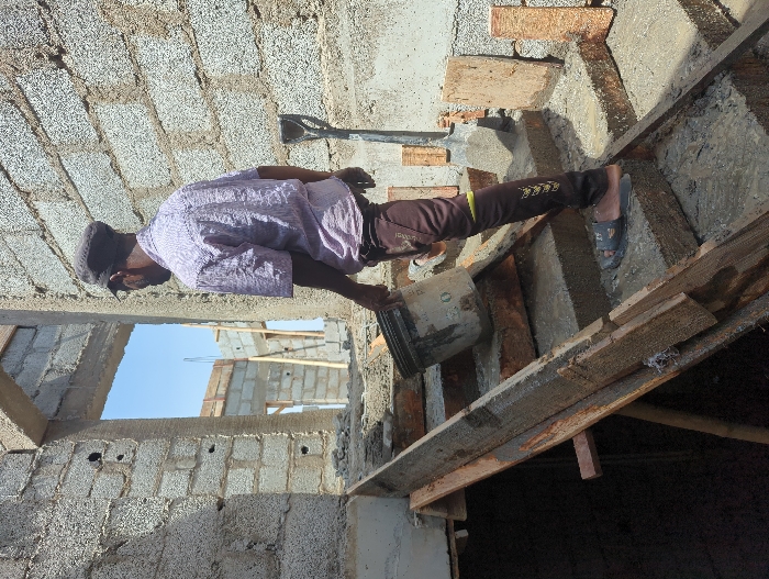 This image depicts an outdoor construction scene in Karsana 2, Nigeria