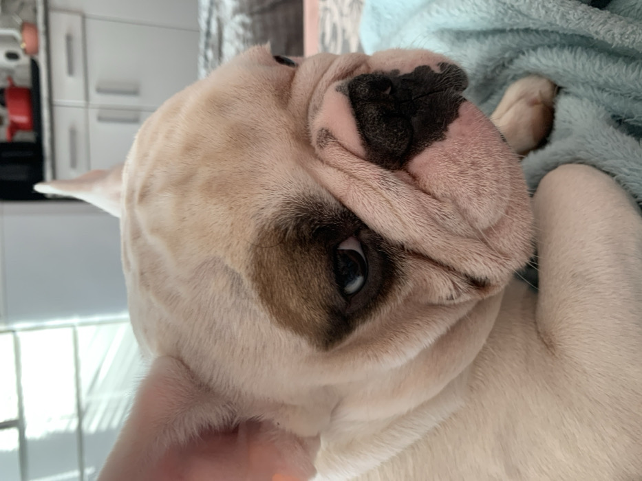 - "A cream-colored French Bulldog with a fawn/tan patch encompassing its left eye and extending slightly onto its forehead occupies the central foreground" by FM-9p7HR2, licensed under CC BY 4.0