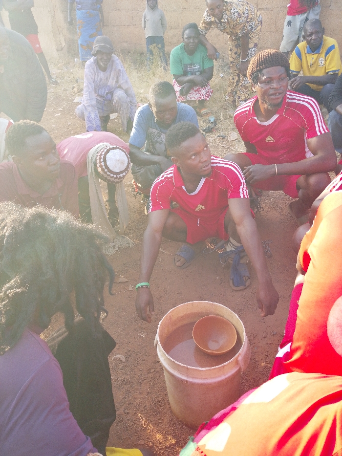 - "The image captures an outdoor gathering of approximately 12-15 individuals, predominantly male, in Vodni, Nigeria, on reddish-brown earth" by FM-g0J513, licensed under CC BY 4.0