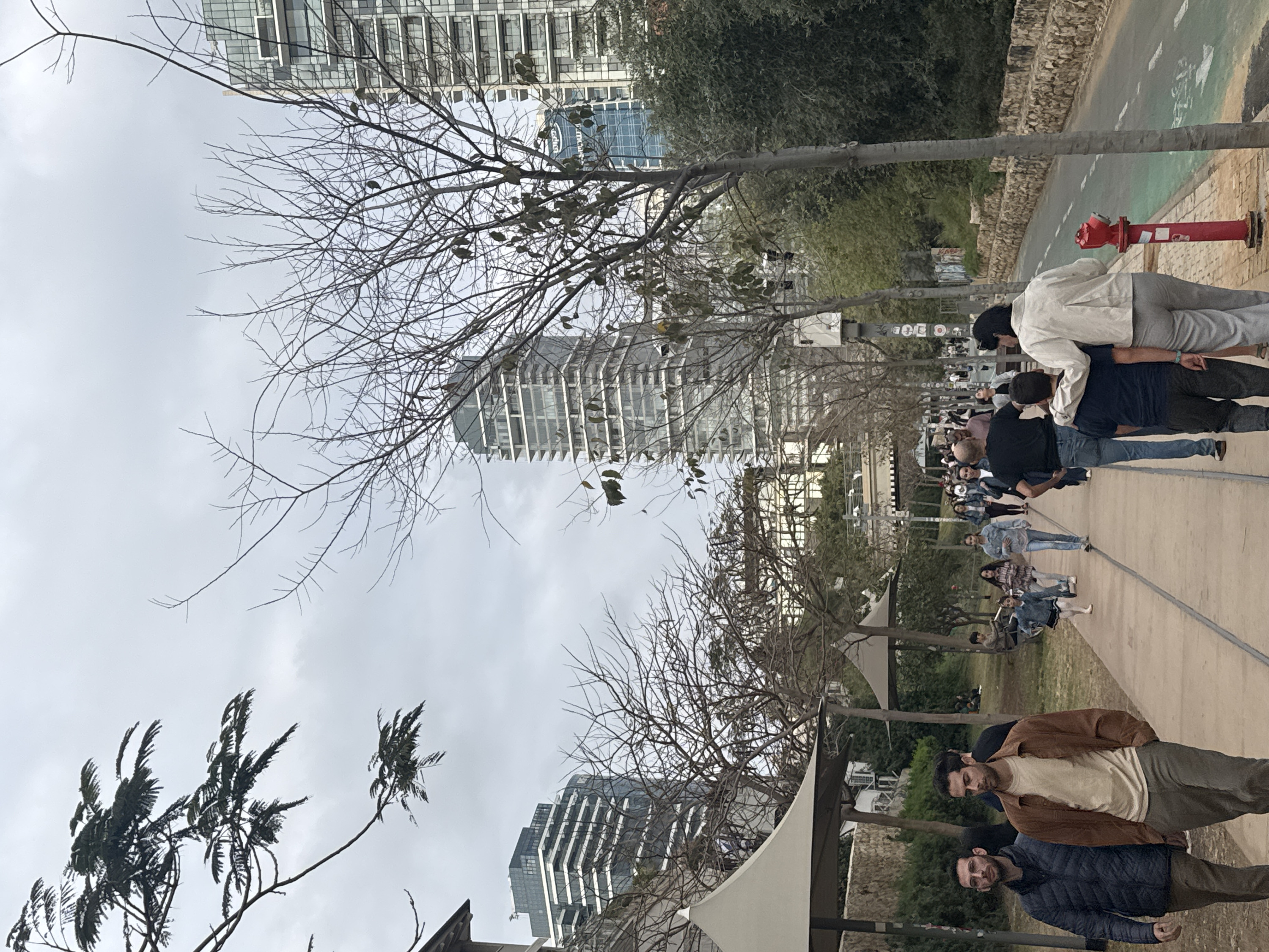 - "A sidewalk with a crowd of pedestrians passes under trees towards a city skyline" by FM-jqYrS2, licensed under CC BY 4.0