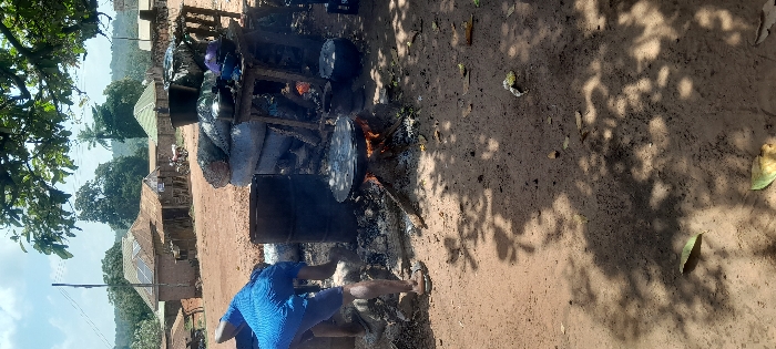 - "The image depicts an outdoor cooking and communal area in Okura, Nigeria, under a clear sky with overhead foliage casting dappled shadows" by FM-FepK02, licensed under CC BY 4.0
