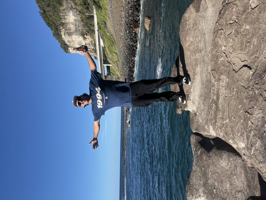 - "A single male individual stands centrally on a flat, light grey rock formation at the ocean's edge in Coalcliff, Australia, in the vicinity of the Seacliff Bridge" by FM-R1zri2, licensed under CC BY 4.0