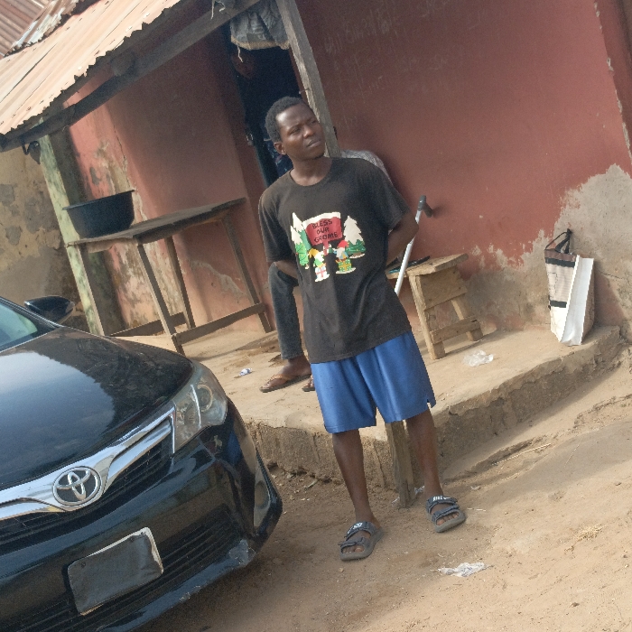 This daytime image, captured in Akwanga, Nigeria, shows an outdoor scene adjacent to a reddish-brown building