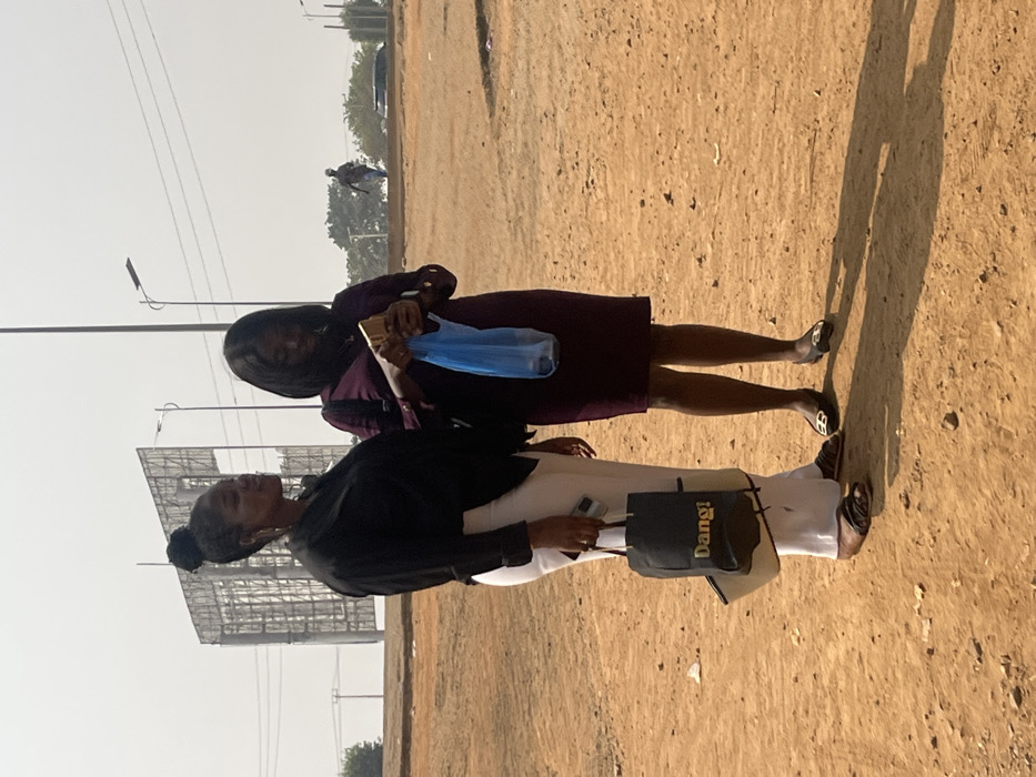 - "The scene depicts two adult females standing on unpaved reddish-brown earth under a hazy sky in the city of Kuchingoro, Nigeria" by FM-marMB2, licensed under CC BY 4.0