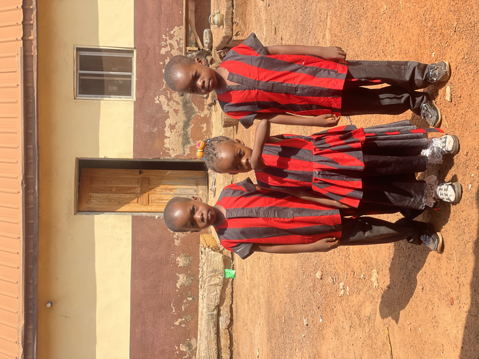 Three young children are depicted standing outdoors under bright sunlight in Oturkpo, Nigeria
