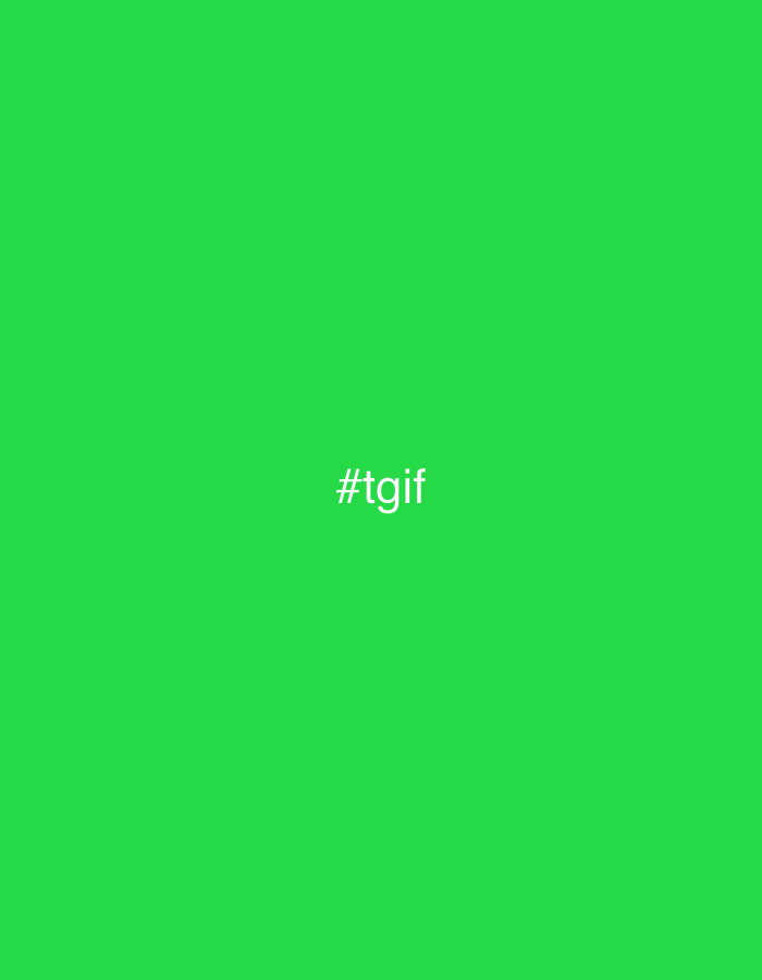 The image displays a uniform, solid, bright green background. Centered horizontally and vertically on this background is the white alphanumeric text "#tgif" rendered in a sans-serif typeface. No other subjects, objects, people, actions, interactions, or environmental features are present. The image is a digital graphic and contains no visual information or discernible elements that would establish its location in Klösterle, Austria, or any other specific real-world geographical setting.