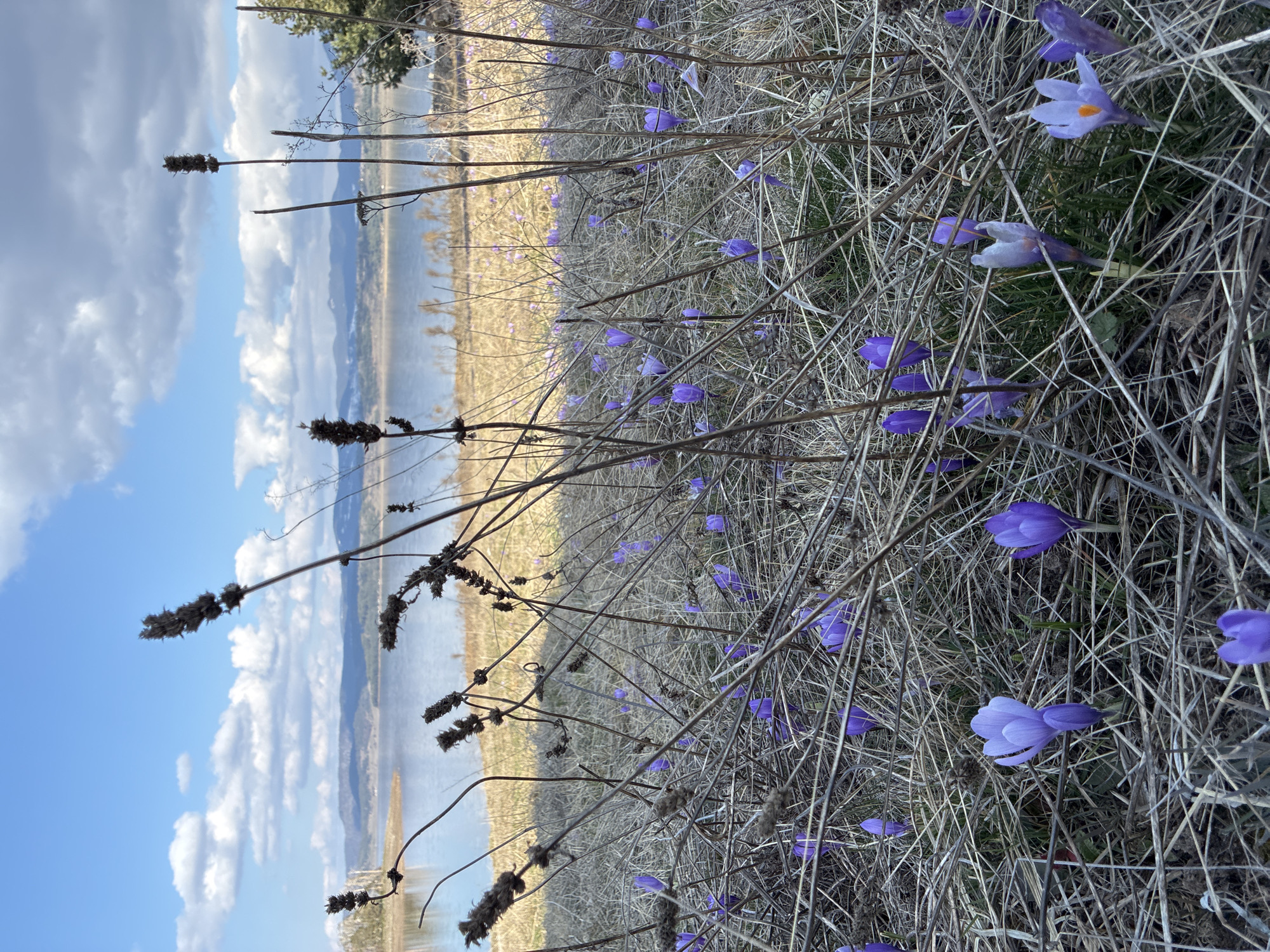 - "The image depicts a spring landscape in Tsigov chark, Bulgaria, focusing on a field of purple crocuses beside a large body of water" by FM-6xt0I2, licensed under CC BY 4.0
