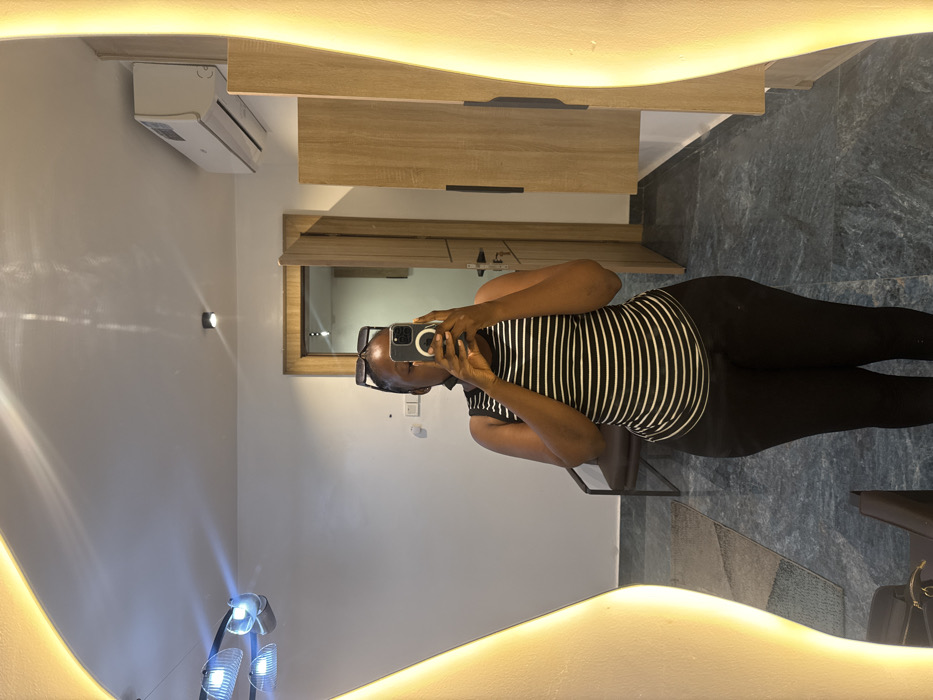 An individual is captured in a mirror selfie within an indoor space in Abuja, Nigeria, likely a modern hotel room or serviced apartment