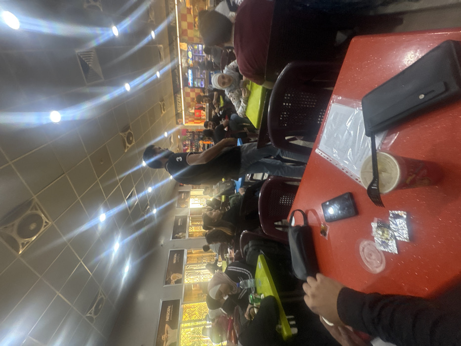 - "An indoor cafeteria or food court in Rukn ad-Din Municipality, Syria, is depicted from a low-angle perspective, focusing on a red speckled table in the foreground" by FM-Vg5R62, licensed under CC BY 4.0