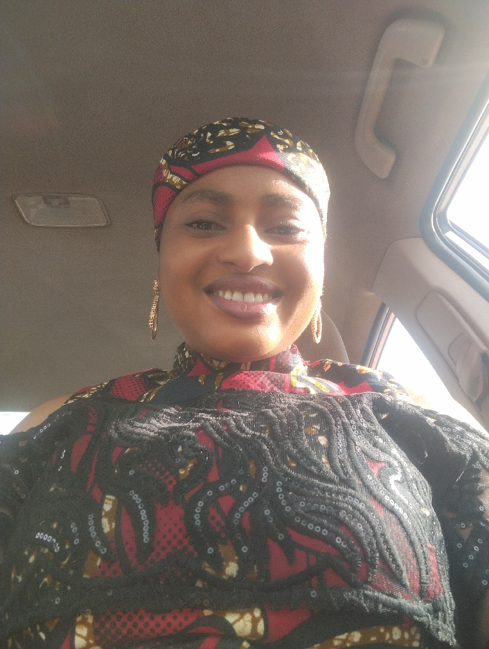 The image depicts an adult woman seated inside a vehicle, located in the city of Barden Yana, Nigeria