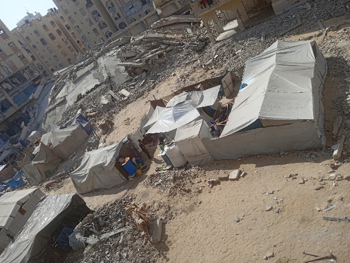 - "An elevated view captures a temporary settlement located amidst extensive urban destruction in the city of Khan Yunis, Palestinian Territory" by FM-cV3b62, licensed under CC BY 4.0