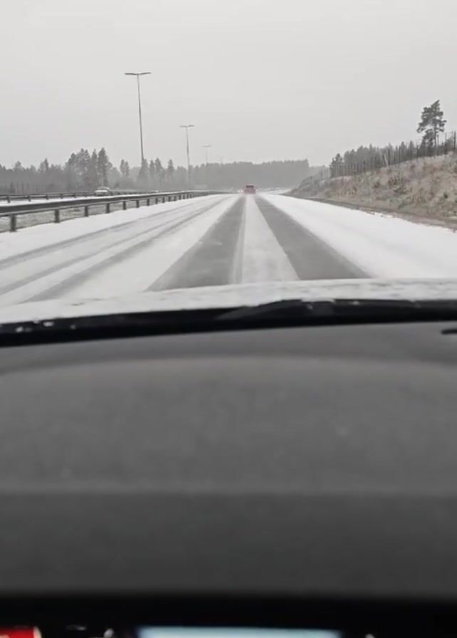 - "A forward-facing interior perspective shows a vehicle traveling on a highway that is partially covered in snow" by FM-mgiLz2, licensed under CC BY 4.0