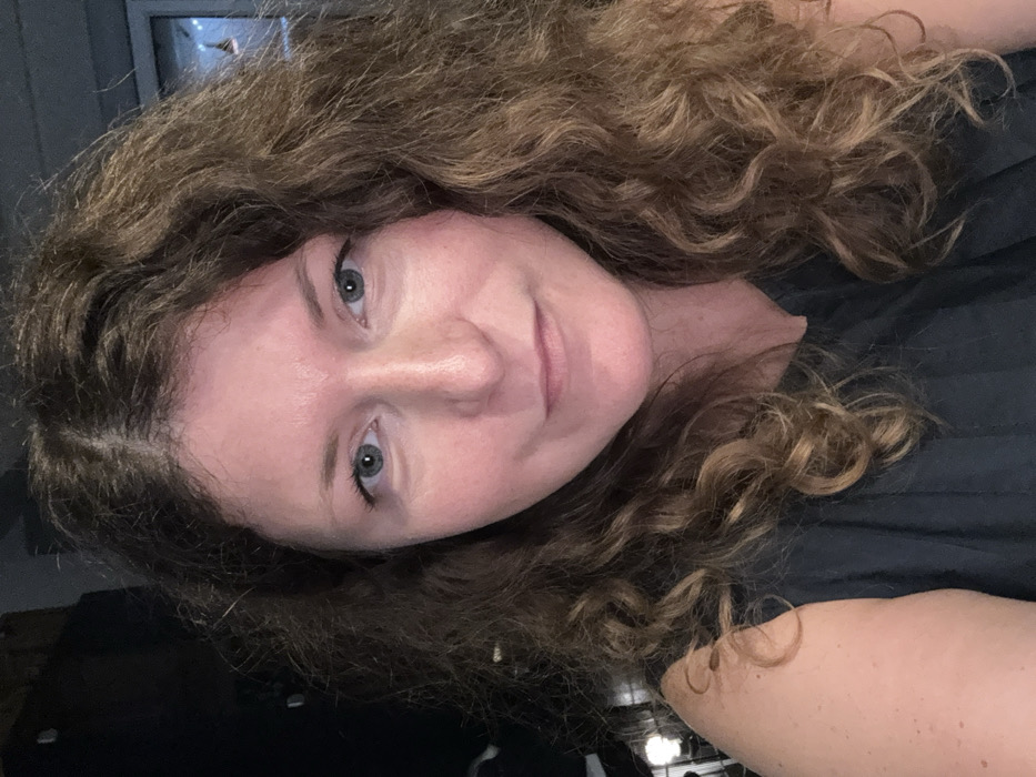 The image displays a headshot of an adult female, positioned centrally and facing directly forward
