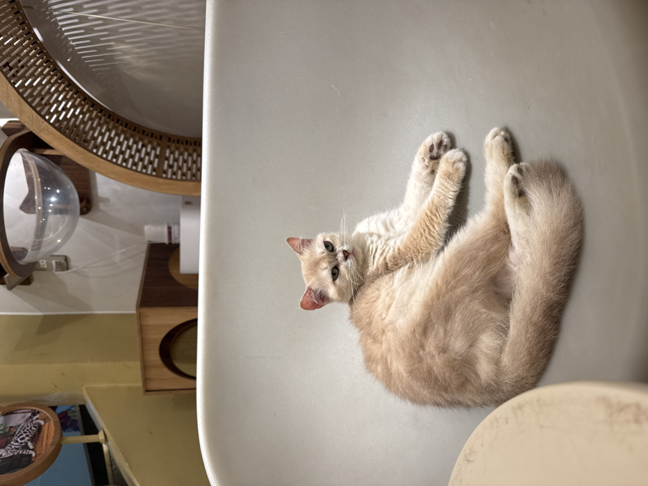 - "An indoor scene in Hòa Cường Ward, Vietnam, depicts a light orange and cream-colored cat resting on its left side within a light grey, curved seating unit" by FM-VtZBW2, licensed under CC BY 4.0