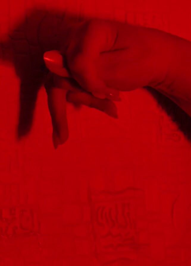 hand in a red-lit environment, followed by a series of indistinct objects or shapes against a red background. The shapes and objects remain unclear due to the red lighting and overall blurriness.