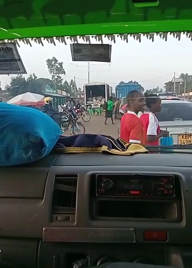 The video is shot from the interior of a vehicle, possibly a bus or truck, with a green-painted roof