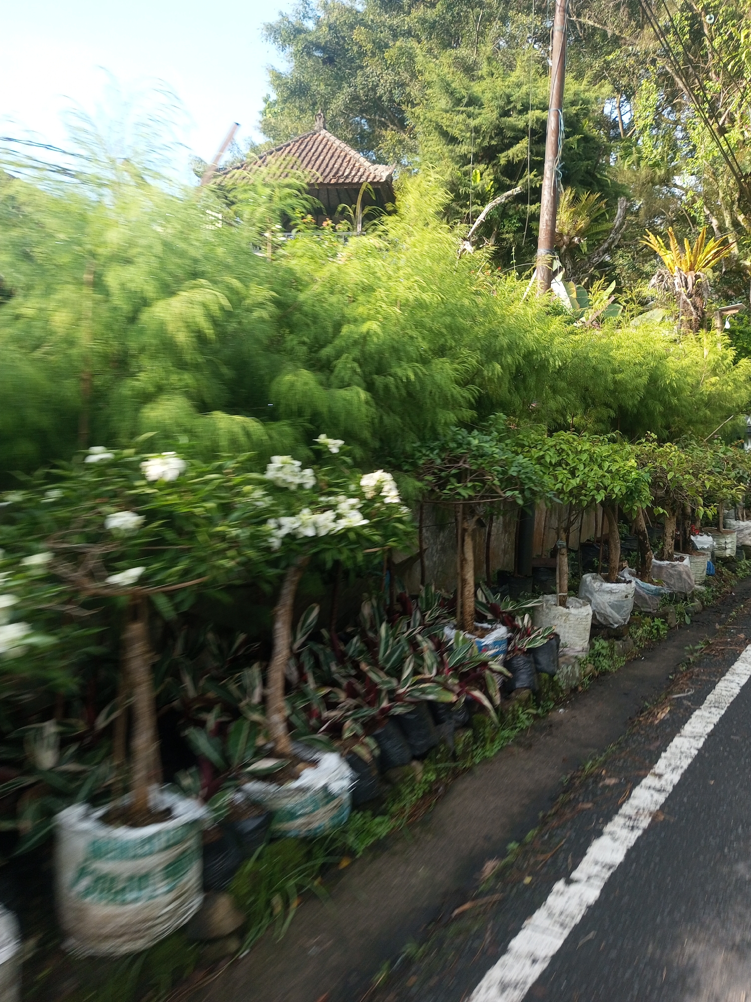 - "The image depicts a roadside scene in Mya Sit Kaing Ywar Thit, Myanmar, showing an assortment of potted plants for sale or display alongside a paved road with a painted white dividing line" by FM-4tMAx1, licensed under CC BY 4.0