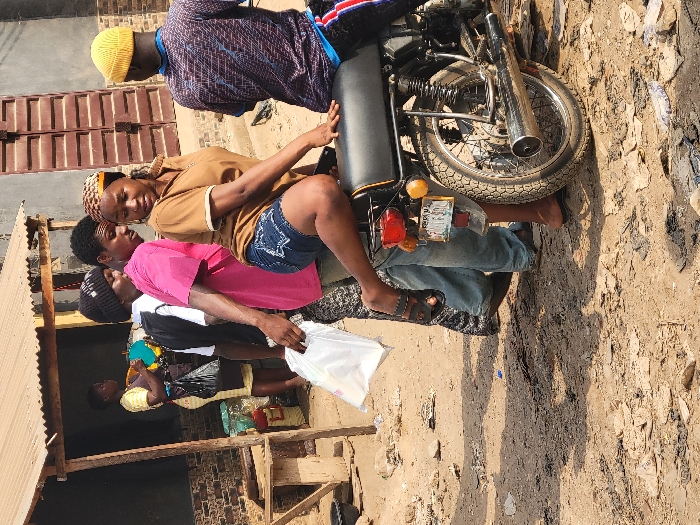 The image depicts an outdoor scene in what appears to be a street or informal market area in Awka, Nigeria