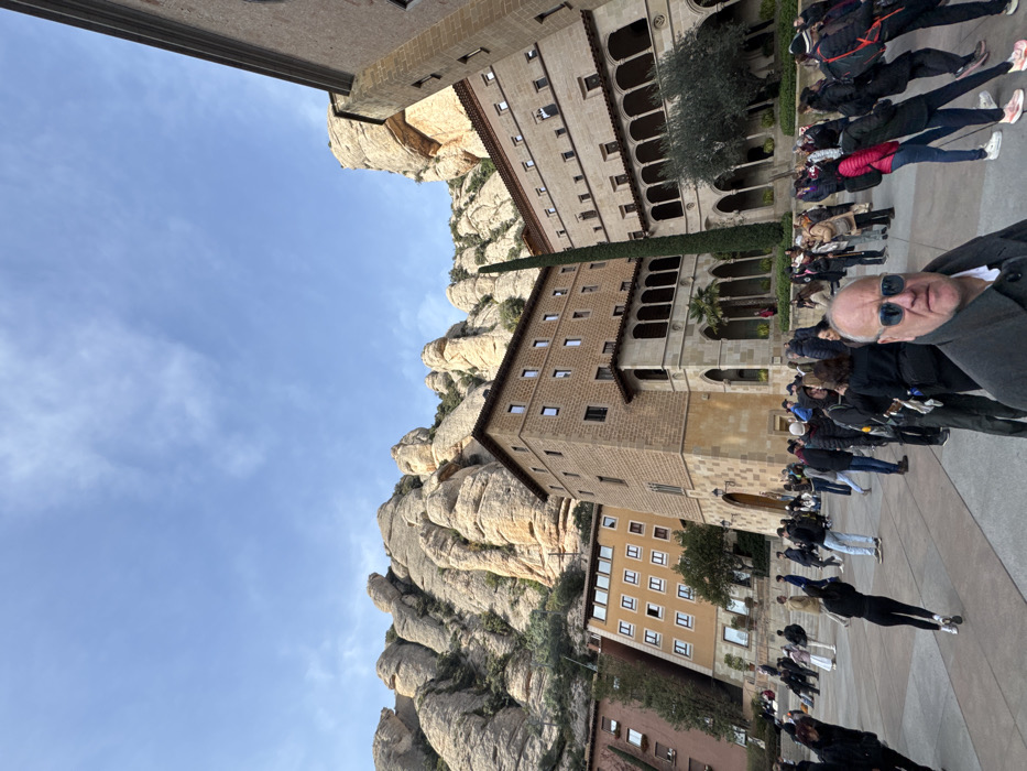 - "The image depicts a crowded public plaza at the Montserrat Abbey complex in Monistrol de Montserrat, Spain, set against the backdrop of the distinctive, light-colored conglomerate rock formations of the Montserrat mountain range" by FM-5V1Jf1, licensed under CC BY 4.0