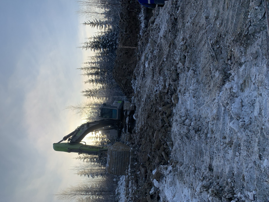- "An excavator sits on frozen ground near bare trees and evergreens" by FM-RWjjF2, licensed under CC BY 4.0