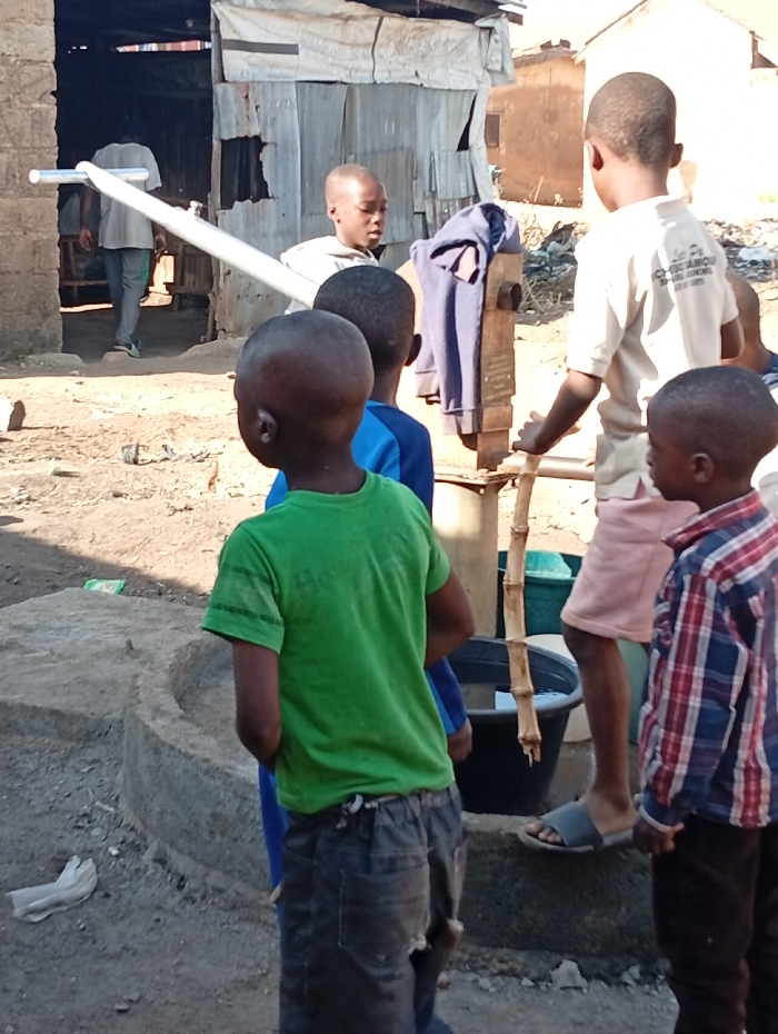 - "A group of young children gather around a water pump in a dusty, impoverished area" by FM-Ha99I2, licensed under CC BY 4.0