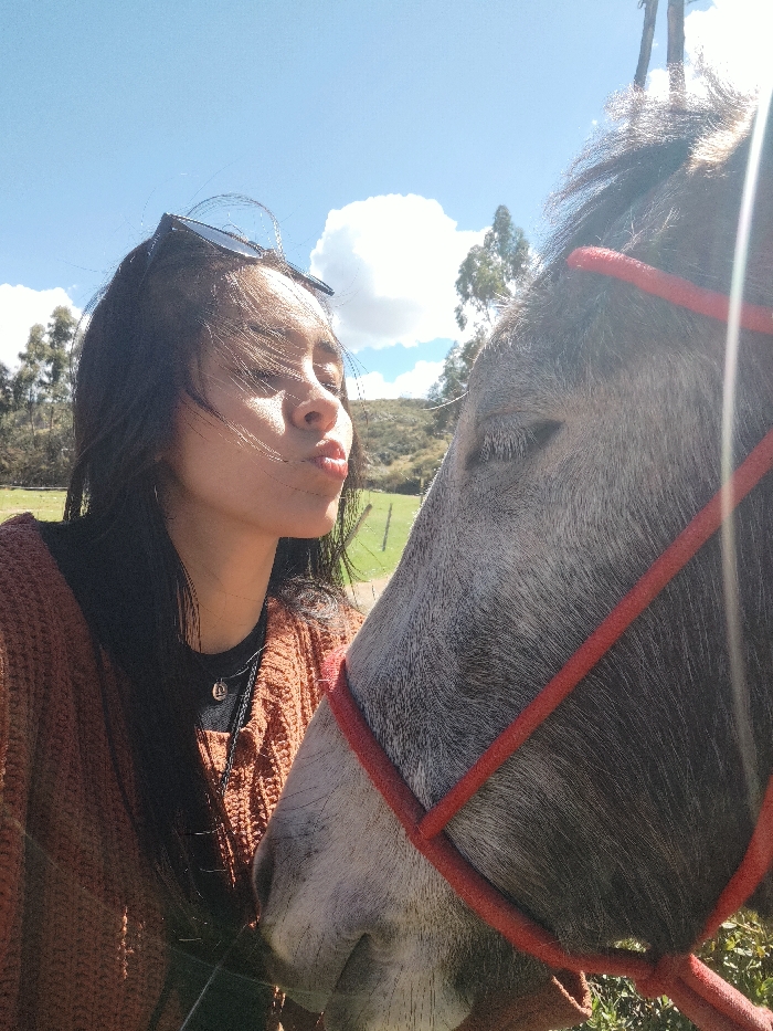 - "The image depicts a young adult female interacting with a light grey equine animal in an outdoor setting" by FM-20kwN2, licensed under CC BY 4.0