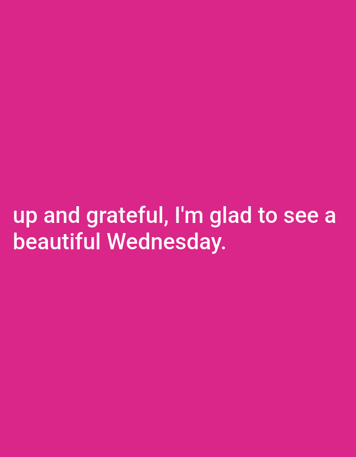 The image displays a solid fuchsia background. White, sans-serif text is centered in the lower-left quadrant, reading: "up and grateful, I'm glad to see a beautiful Wednesday." No individuals, objects, or discernible physical environment are depicted. The image does not provide visual information to determine a specific geographical location in the city of Narayi, Nigeria, or any other physical location.