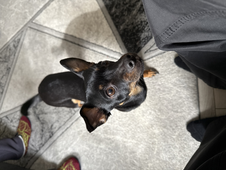 - "This indoor scene, located in the city of Tsalapitsa, Bulgaria, depicts a small dog, predominantly black with tan markings on its muzzle, chest, and legs" by FM-iGXwF3, licensed under CC BY 4.0