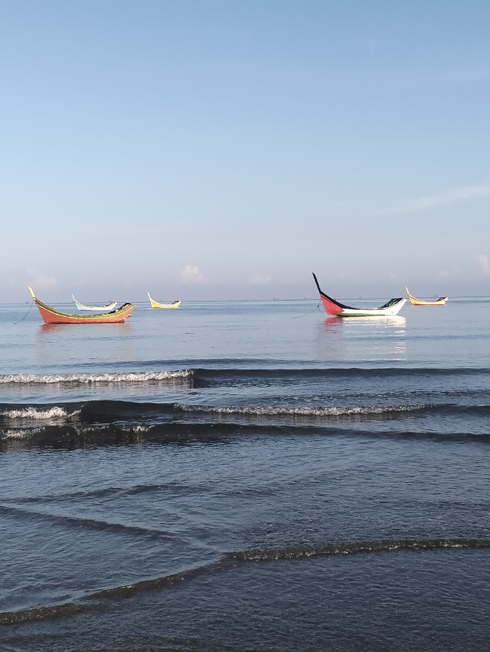 - "The photograph shows a serene seascape with several traditional wooden boats scattered across calm waters under a clear blue sky" by FM-sAcf03, licensed under CC BY 4.0