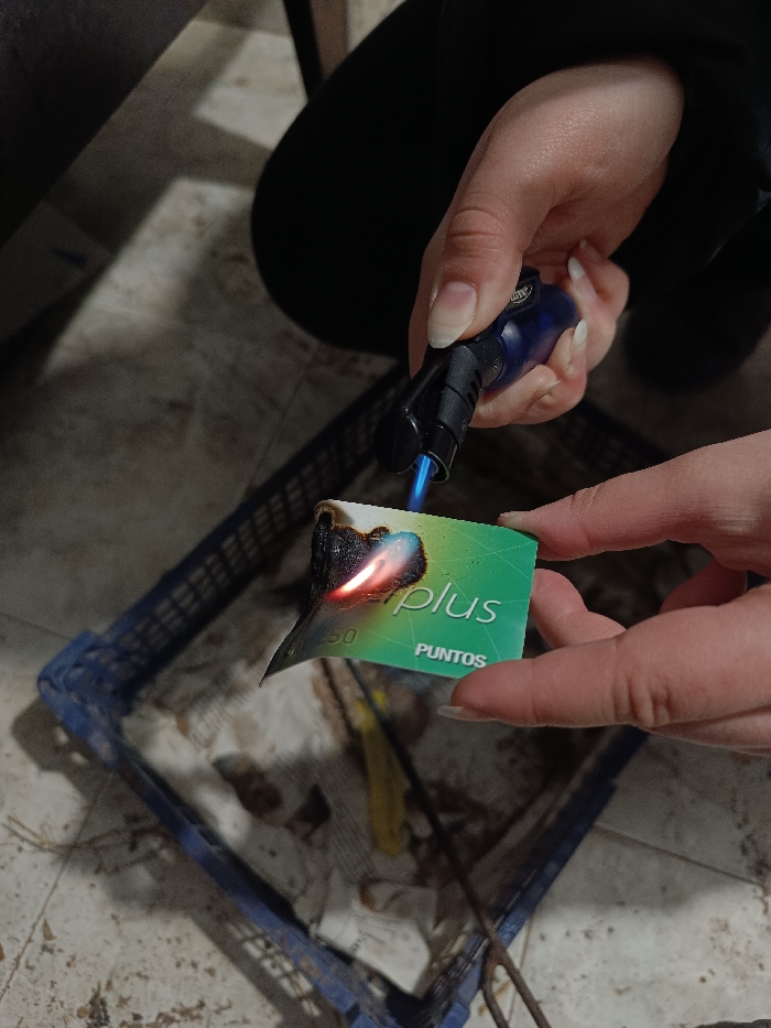 - "The scene depicts two human hands interacting with a burning plastic card over a blue plastic crate on a dirtied floor in Cherkovitsa, Bulgaria" by FM-SVEiv2, licensed under CC BY 4.0
