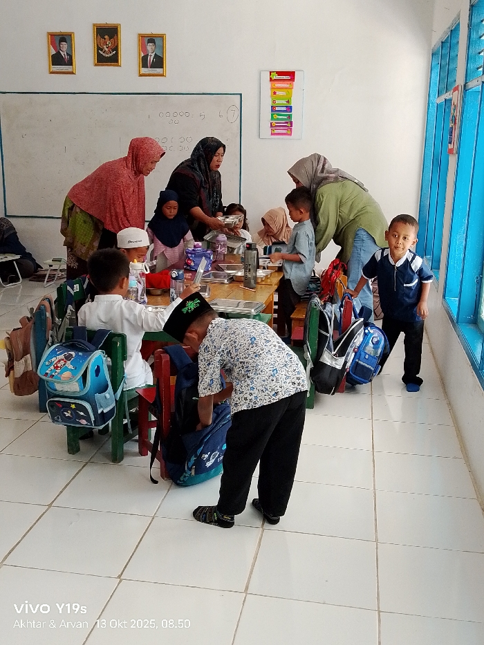 - "An indoor scene in a classroom or dining area at an educational facility in Jagapura Kulon, Indonesia, depicts approximately three adult women interacting with nine young children during what appears to be a meal or snack time" by FM-bXIMf1, licensed under CC BY 4.0