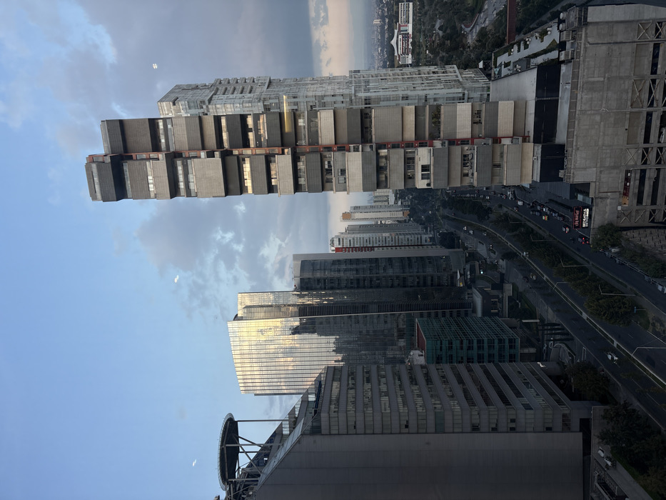 - "The image depicts an aerial-perspective cityscape in the Bosques de las Lomas / Santa Fe area of Mexico City, Mexico, under a partially cloudy sky during late afternoon or early evening" by FM-ojFSB3, licensed under CC BY 4.0