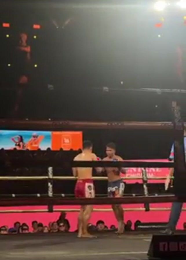 Muay Thai match in a ring surrounded by spectators
