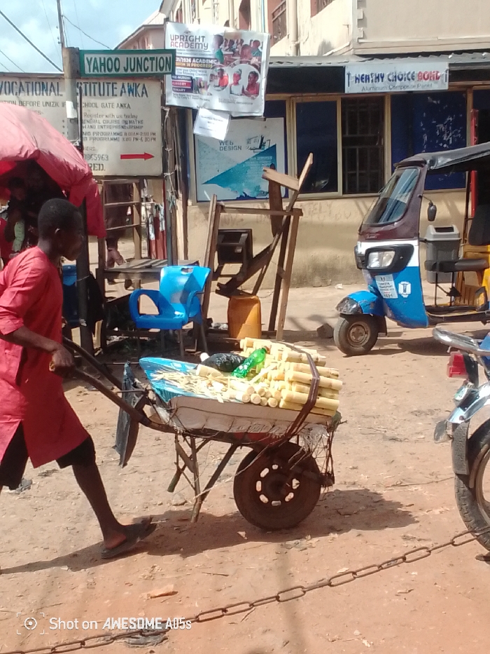 - "The image depicts an outdoor street scene in Awka, Nigeria, specifically at "Yahoo Junction" near "Institute Awka," as indicated by prominent signage" by FM-libCE3, licensed under CC BY 4.0
