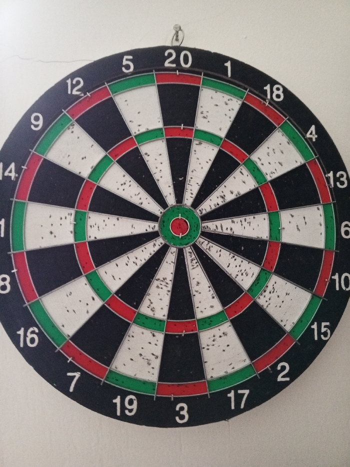 - "The image depicts a dartboard mounted on a light-colored wall" by FM-0j8n03, licensed under CC BY 4.0