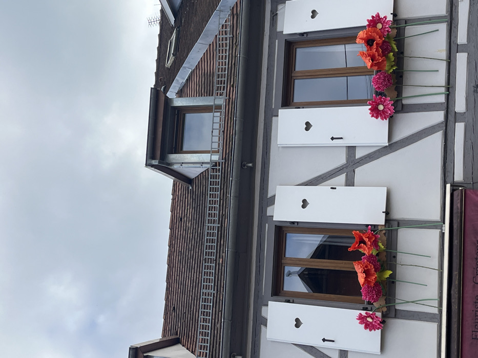- "This image depicts the upper facade and roofline of a half-timbered building located in Rosheim, France, under an overcast sky" by FM-eWTi73, licensed under CC BY 4.0