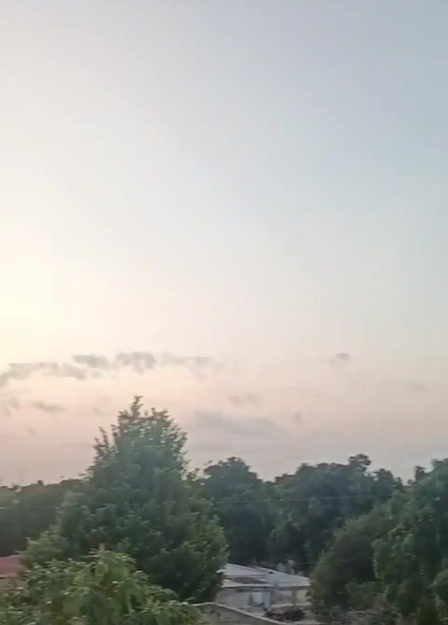 low-angle shot of a neighborhood at dusk. The camera slowly pans across the landscape, revealing houses, trees, and a road with a few cars driving on it. In the distance, the sun is setting, casting a warm glow on the clouds. The sky is a mix of pastel colors, ranging from light blue to soft pink. The trees are lush and green, adding a sense of natural beauty to the urban scene. The overall impression is one of tranquility and peace as the day comes to an end. The phone making the video is identified as an Infinix NOTE 40 Pro.