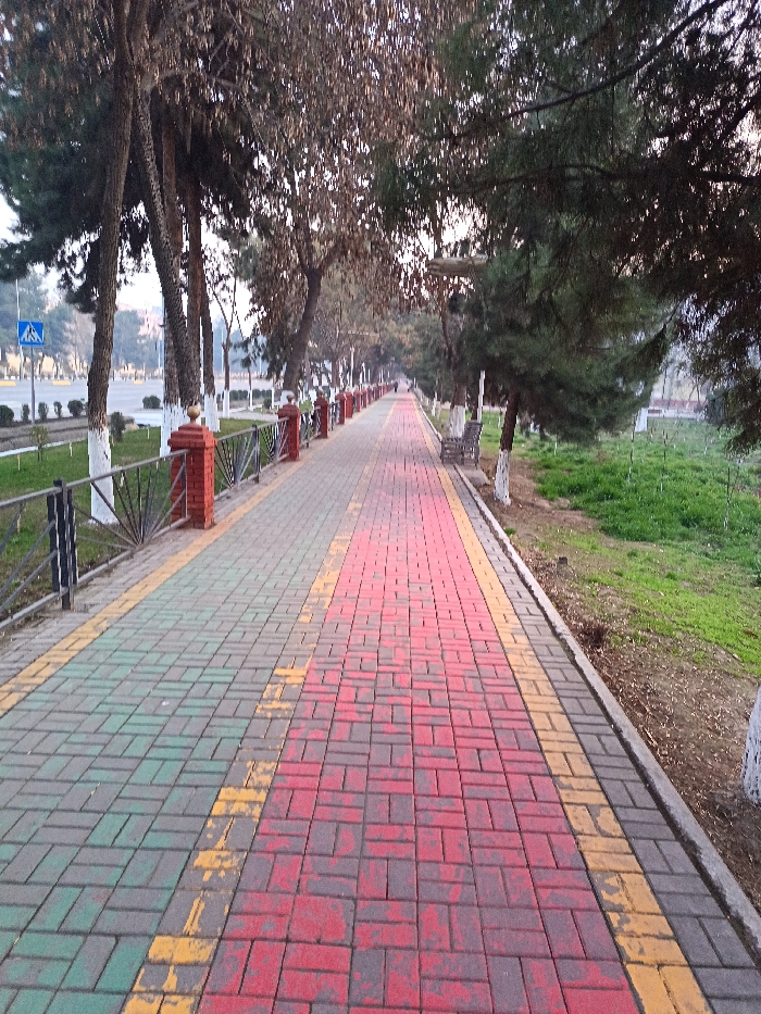 - "A long, brick-paved walkway stretches into the distance, marked with red and green sections separated by yellow lines" by FM-lS7ot1, licensed under CC BY 4.0
