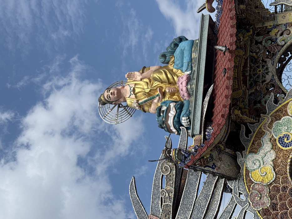 - "A large, multi-colored statue of a seated deity is prominently displayed atop an ornate temple structure in Xuân Thành, Vietnam" by FM-Oi8nu1, licensed under CC BY 4.0