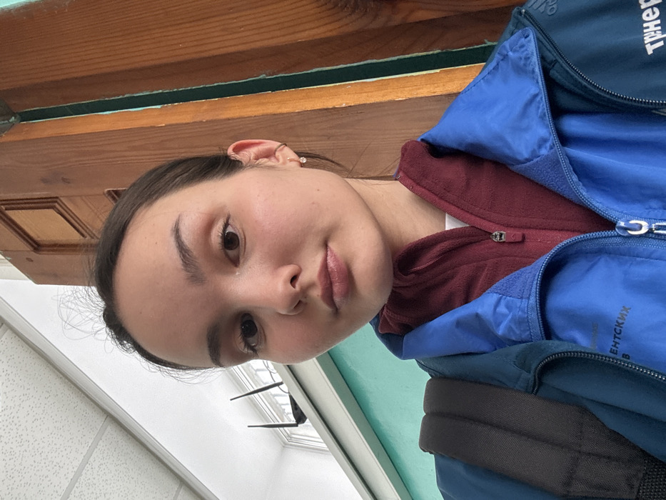 An indoor, chest-up selfie taken in Tayshet, Russia, depicts a young female looking directly at the camera