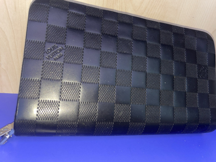 - "A dark-colored, rectangular wallet or clutch featuring the Louis Vuitton Damier Graphite pattern is depicted" by FM-qX7cx2, licensed under CC BY 4.0