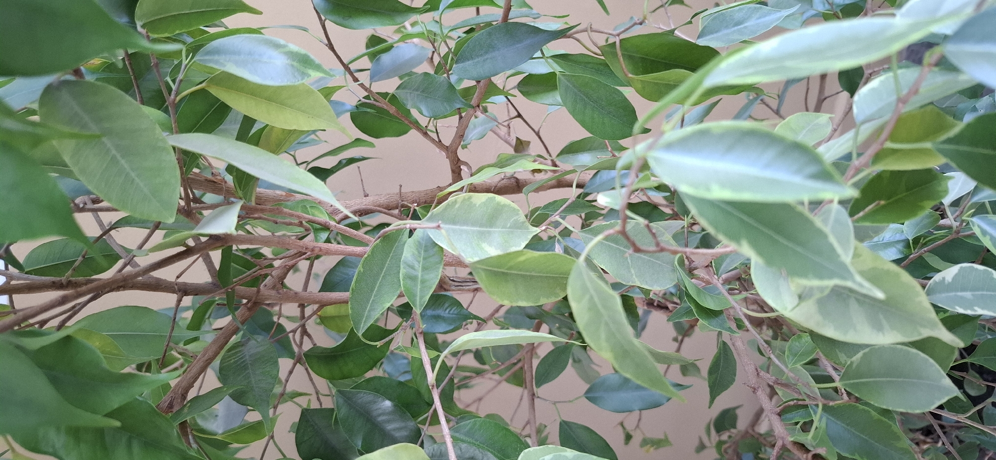 - "The image displays a close-up, vertical shot of a living Ficus benjamina plant, specifically a variegated cultivar, located in Pazardzhik, Bulgaria" by FM-pGnKf1, licensed under CC BY 4.0