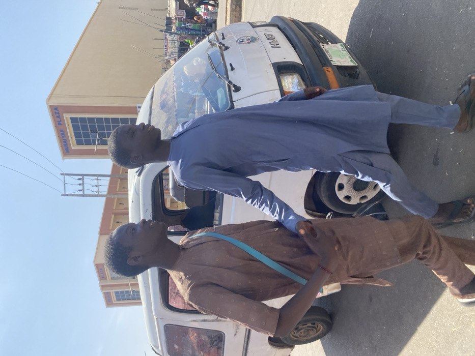 This image depicts an outdoor urban scene in Sabon Gari South, Nigeria, under bright, clear daylight