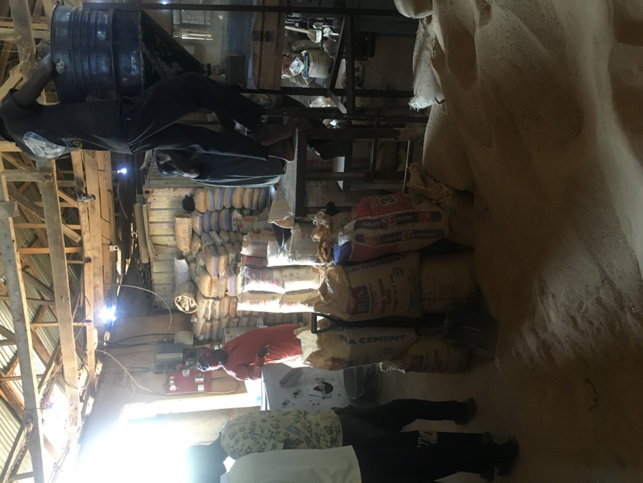 The image depicts an interior scene within a material processing or storage facility located in Bukuru, Nigeria