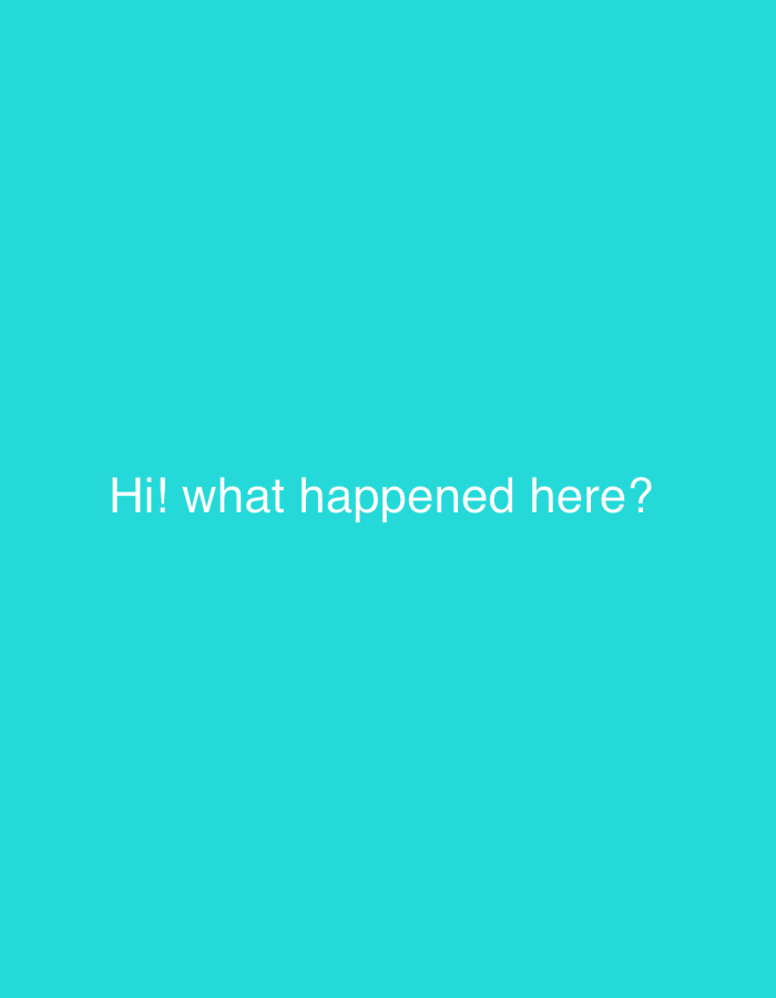 A solid teal background fills the frame. Near the center is the question, "Hi! what happened here?" written in white text. The text is centered horizontally and positioned in the lower half of the image. The font is simple and sans-serif, making it easily readable against the bright background.